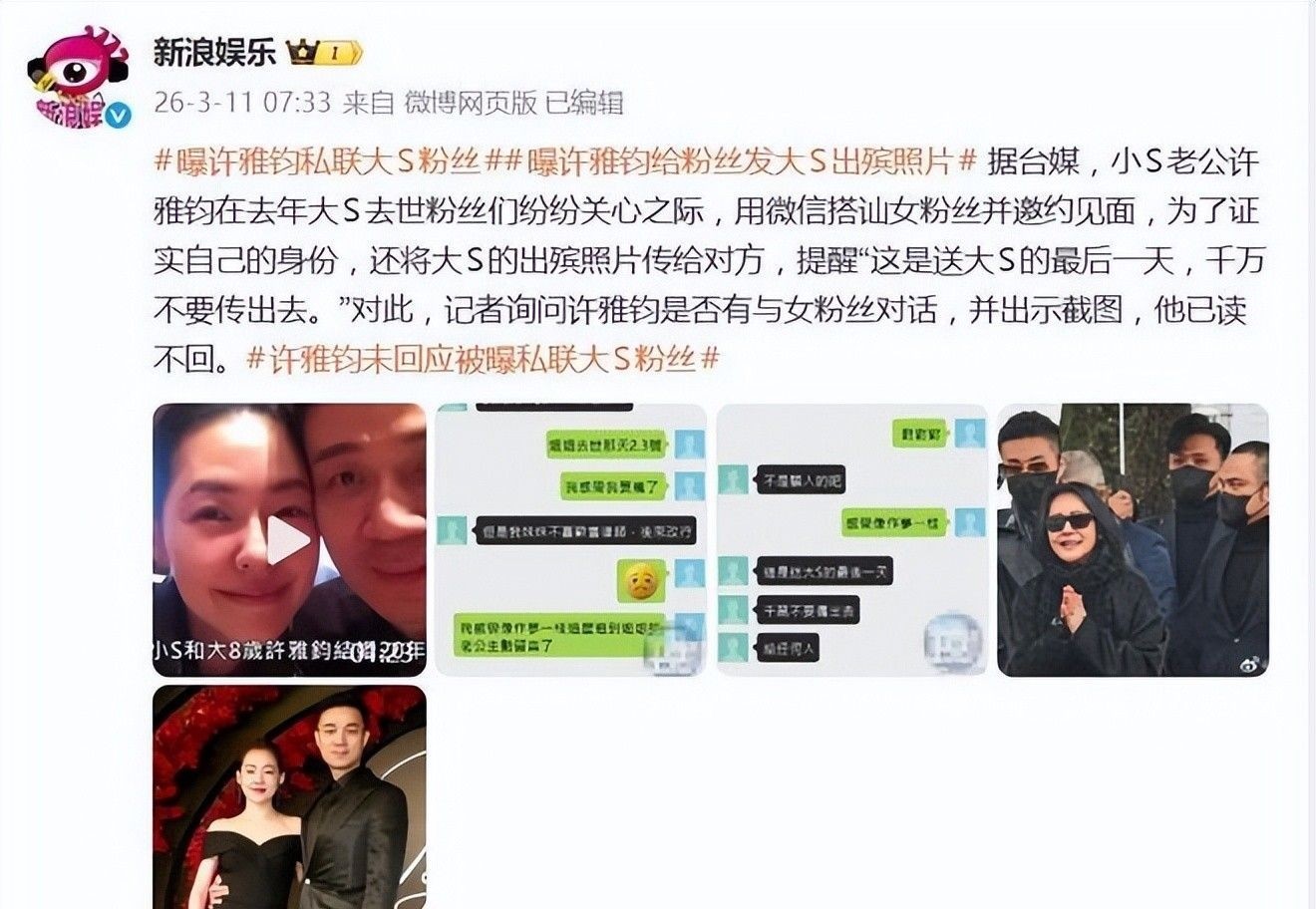 该女子长期在社交平台发布缅怀大S的文字与影像,持续为S家发声,本应被视为值得珍视的忠实拥趸。然而许雅钧的操作,彻底背离了常理与伦理边界。